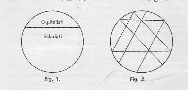 187-QUARTA LINEA INTERSECANTE I CONFLITTI DI CLASSE (L’ISTITUZIONALIZZAZIONE DEI CONFLITTI DI CLASSE) – [Coalizione sindacale = monopolio della manodopera vs monopolio della proprietà] / Il contratto collettivo /188- Quando il meccanismo di adattamento della libera concorrenza sia –come oggi- parzialmente o totalmente abolito /[Dopo la breve stagione liberale della concorrenza in cui il dispotismo dei consumatori ridusse al minimo i prezzi] nel nostro sistema attuale all’interno del quale i principi contraddittori si frammentano e si intersecano, il rapporto è stato capovolto: ora il consumatore è nelle mani del venditore / Rispetto dei diritti acquisiti come parte del patrimonio concettuale liberale /195- La scala dei redditi si va restringendo a vista d’occhio / Affinità di interessi tra capitale e lavoro nella società urbana industriale = antagonismo tra classe operaia e capitale passa in secondo piano /La miseria per chi percepisce il reddito cresce con la distanza dalla produzione dei beni [solo-consumatori] /196- Un ritorno all’economia libera è impensabile per la situazione attuale dei rapporti tra gli stati e in parte contrario agli interessi delle masse.